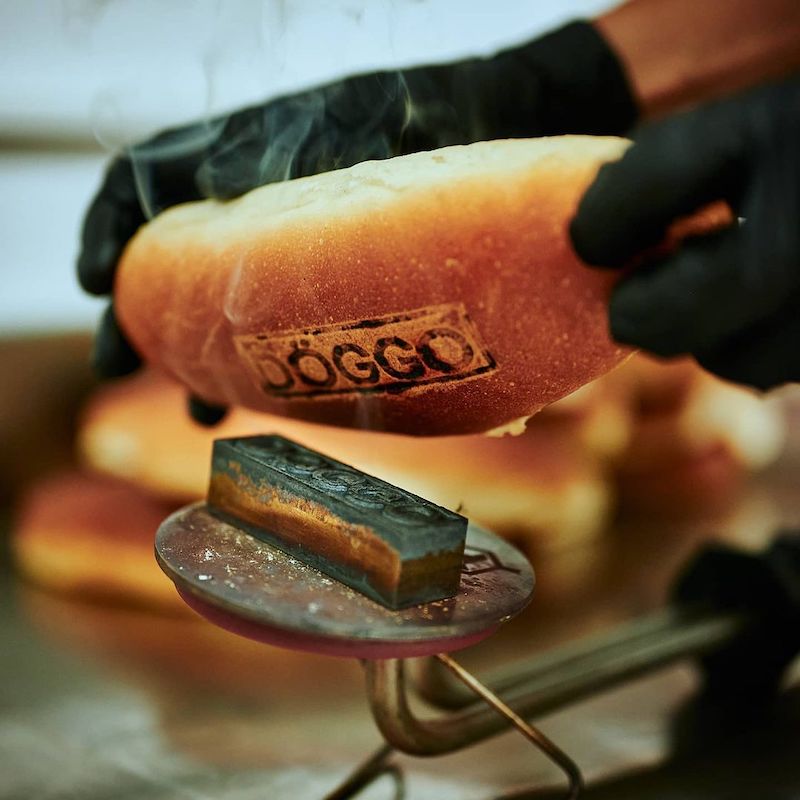 Imagen superior: el pan sellado de restaurante de perritos calientes Döggo.