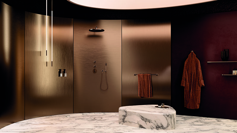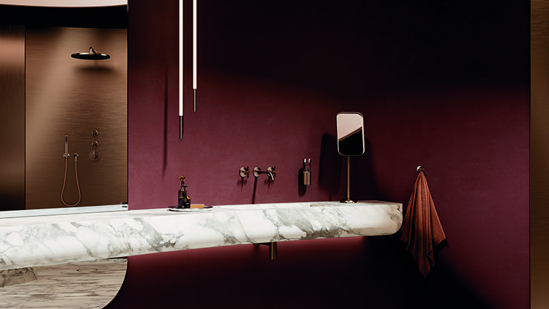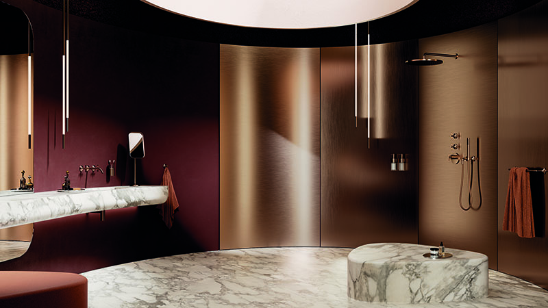 Los nuevos acabados mate en bronce cepillado que ha diseñado Dornbracht encajan a la perfección en diversos espacios por su versatilidad.