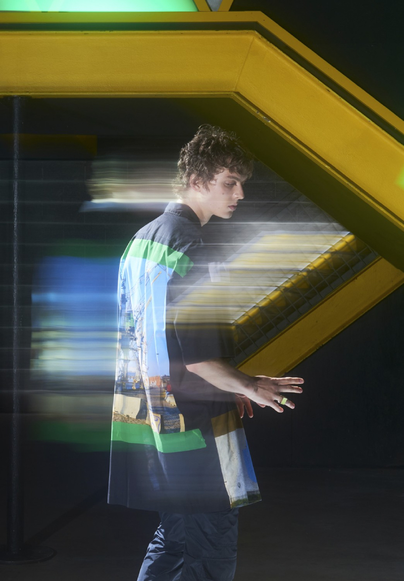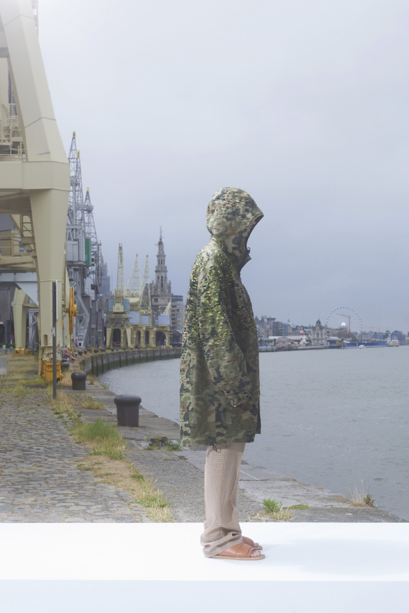 Todo el imaginario de esta colección nació desde los smartphones del equipo creativo de la firma. Mediante instantáneas y una carpeta compartida en la nube, los creativos compartían imágenes del cielo de la ciudad, edificios, zonas en obras, y en general, lugares que veían desde las ventanas de sus casas durante el encierro, para finalmente, retocarlas e imprimirlas en las parkas, pantalones y camisas de seda que podemos disfrutar en esta colección de Dries Van Noten SS22 Menswear.