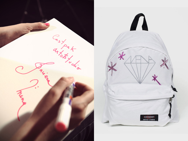 Inspirada en el cielo del sur de Chile y en su último cedé, Javiera Mena ha customizado la sempiterna mochila Padded Pak’R’ de Eastpak. No es que Javiera vaya a dejar el mundo de la música por el de la moda, se trata de una colaboración puntual para el proyecto EASTPAK Artist Studio, donde artistas de todo el mundo aplican su mundo personal sobre el diseño de la mochila. Todas las piezas creadas son únicas e irrepetibles y se pondrán a la venta el próximo día 19 de marzo en la web de Eastpak. Aparte de hacerte con una pieza de coleccionista, también contribuirás a la lucha contra el SIDA, ya que la recaudación íntegra se destinará a Designers Against Aids (DAA), organización internacional dedicada a combatir el SIDA en el mundo. Las mochilas creadas por los artistas hispano parlantes se expondrán en el Instituto Europeo di Design Madrid, del 2 al 9 de marzo. Un espacio expositivo diseñado por alumnos de segundo de diseño de interiores del IED Madrid: Fernanda Canessa Chiriboga, Tania León Moscoso y Sophiko Tsiklauri.