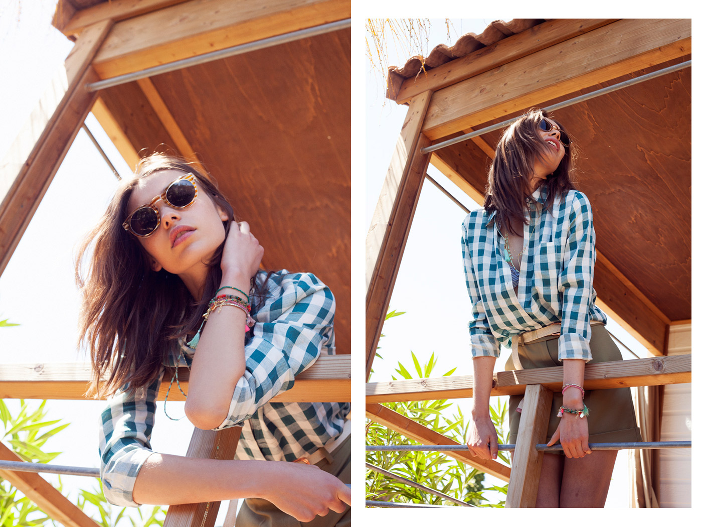 Arriba: Camisa American Vintage + Bikine 2 Mares + Pantalones Carven para La Redoute Madame + Cinturón Marie Sixtine + Gafas Vans + Collar BDBA + Pulseras Thomas Sabo y Sita Nevado