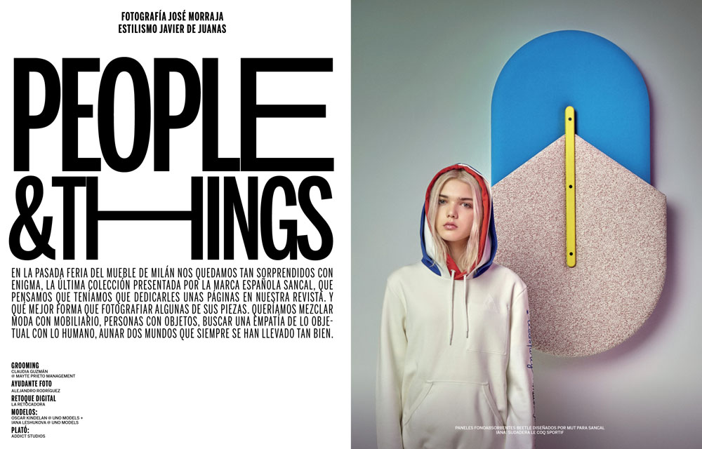 En la pasada Feria del Mueble de Milán nos quedamos tan sorprendidos con Enigma, la última colección presentada por la marca española Sancal, que pensamos que teníamos que dedicarles unas páginas en nuestra revista. Y qué mejor forma que fotografiar algunas de sus piezas. Queríamos mezclar moda con mobiliario, personas con objetos, buscar una empatía de lo objetual con lo humano, aunar dos mundos que siempre se han llevado tan bien.