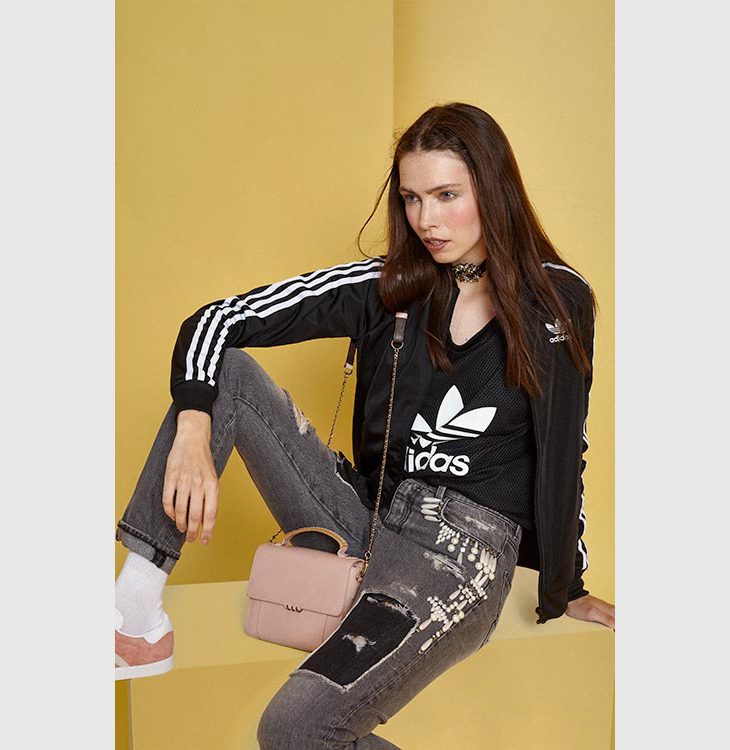 Arriba: Chaqueta adidas Originals + Jeans Pinko + Bolso Martina Wyss + Chocker Essentiel + Calcetines y Zapatillas adidas Originals
