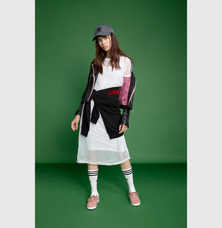 Arriba: Vestido, Gorra, Calcetines y Zapatillas adidas Originals + Sudadera Sandro Paris + Perfecto Guess Los Angeles