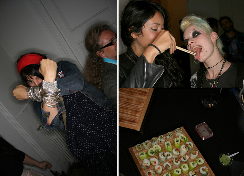 Nos citan en París para una fiesta salvaje y completamente trash con sabor a sushi, champagne, litros de cerveza, mucho cuero y tatuajes. El motivo, la presentación de la linea “vintage” de la marca japonesa de vaqueros Edwin Jeans. Varios Djs, y la banda de muñecas niponas The Dirtrucks hicieron que la gente se entregara hasta altas horas de la madrugada. ¿Quién dijo que en París no se saben divertir? Locura y mucha diversión mezclado con mucho vaquero. Como ejemplo, las bañeras de los baños llenas de cervezas y el lugar del evento, una antigua iglesia.