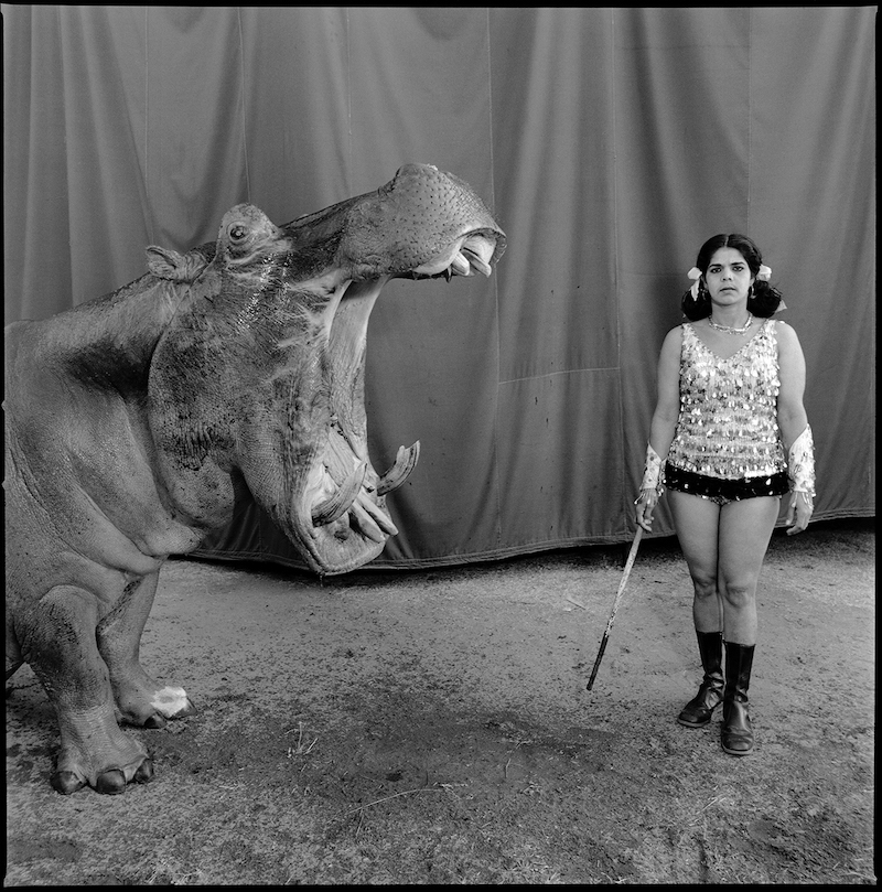 © Mary Ellen Mark. Hipopótamo e intérprete, Great Rayman Circus. Madrás, India, 1989