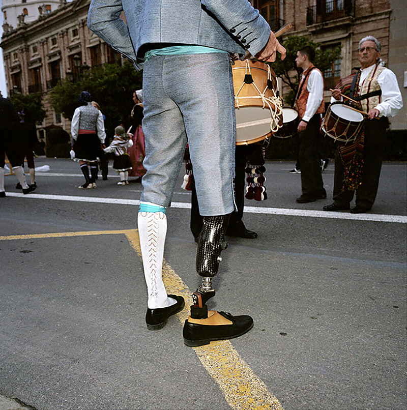 “Desde la intimidad velada de un interior burgués a la violencia del campo de batalla, el zapato despliega su capacidad simbólica y documental.” La fotografía, en su capacidad de capturar momentos y detalles, revela cómo los zapatos reflejan nuestras identidades personales y sociales, incluso nos construyen como sujetos históricos. La exposición El Eco de los Pasos presenta imágenes que van desde zapatillas viejas, que parecen vidas gastadas, hasta tacones femeninos que erotizan y fetichizan, pasando por prótesis ortopédicas que nos recuerdan nuestra condición de seres híbridos, en parte humanos y en parte máquinas.