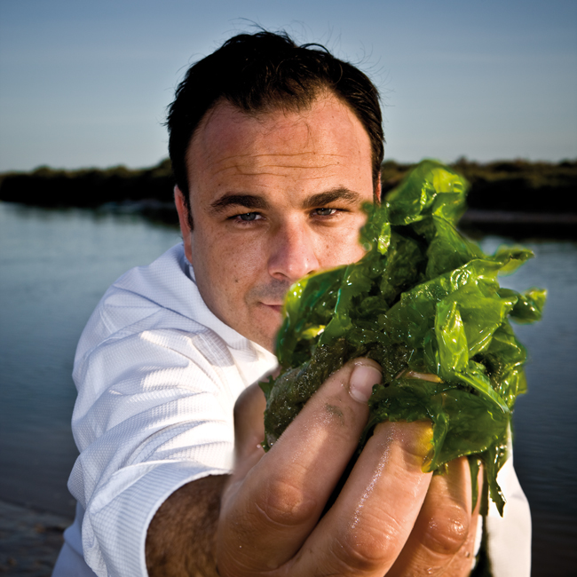 Comer en Aponiente no es como comer en cualquier otro restaurante: antes de empezar hay que coger bien el aire y sumergirse bajo el agua. Escondido en el centro de El Puerto de Santa María, Cádiz, el restaurante que el cocinero Ángel León regenta desde el 2007 es un enfrentamiento cuerpo a cuerpo con el sabor del mar. No por casualidad a Ángel León – que este mes entrevistamos para Neo2 en el nº 111 – se le conoce como el “chef del mar”. El empleo de las escamas de pescado como espesante, del humor vítreo como emulsionante y del alga diatomea para clarificar los caldos son algunos de sus primeros experimentos, mientras su cruzada para dignificar los pescados de descarte le ha llevado a crear embutidos de mar: chorizo, butifarra, caña de lomo y salchichón hechos con la tripa y la carne del albur. Sin embargo, él mismo admite que lo más importante que ha hecho en su vida ha sido descubrir el plancton como ingrediente para el ser humano: cultivado en un huerto marino, el fitoplancton se recoge una vez llegado a su máxima concentración, luego se liofiliza y finalmente se hidrata cinco minutos antes de llegar a la mesa.