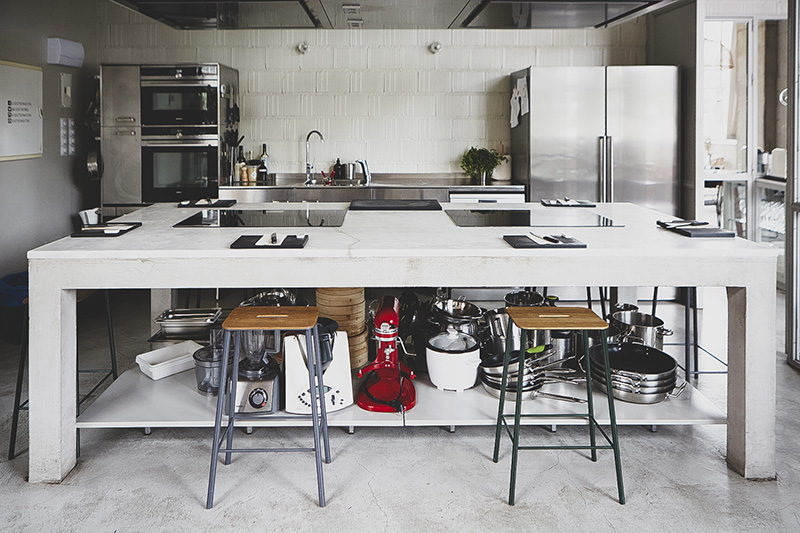 Ellos mismos se definen como anfitriones, por lo que priorizan crear un espacio, donde la gente esté cómoda. Tras unos años, en los cuales, los talleres de cocina son dirigidos a particulares y team buildings, deciden ampliar el espacio de la escuela de cocina a 220 metros cuadrados y junto al estudio de arquitectura Plantea, crean un espacio multidisciplinar, inspirado en sus largas estancias en Copenhague y Londres.