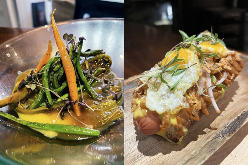 Imágenes superiores: Verduras, Hot God, Bacalao y Manitas, nuevos platos de El Ingrediente