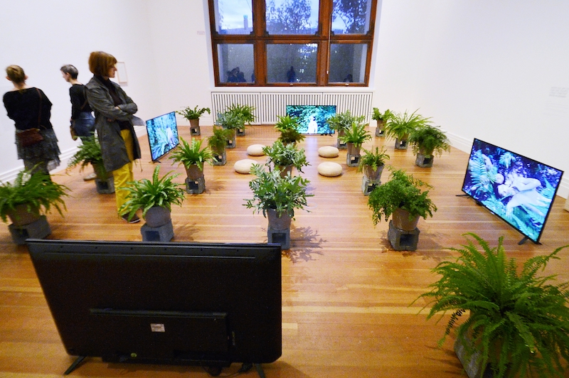 Además de posiciones políticas deliberadas, la exhibición presenta obras que también dan vida a las dimensiones sensuales de los jardines: las instalaciones inmersivas y las obras de vídeo reflejan una abundancia intensa de la naturaleza, pero también la fragilidad del estado paradisíaco.