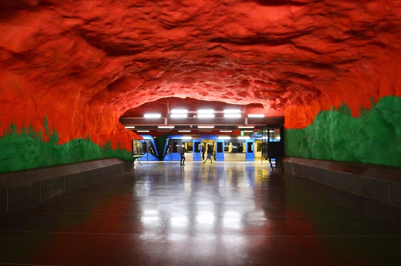 Cien estaciones del metro de Estocolmo están decoradas con obras de arte realizadas site-specific en los andenes, techos, paredes o accesos. Visitada por miles de espectadores cada día, estas instalaciones artísticas convierten al metro de Estocolmo en la exposición de arte subterránea más grande del mundo. Desde los años cincuenta, cuando se planifica o renueva una estación de metro, se encarga a artistas contemporáneos masivas instalaciones que cubren las grutas de acceso a las vias del metro. Además, con el tiempo, las estaciones más antiguas, planificadas y construidas sin ningún tipo de arte, han sido igualmente intervenidas con estatuas, murales e instalaciones.