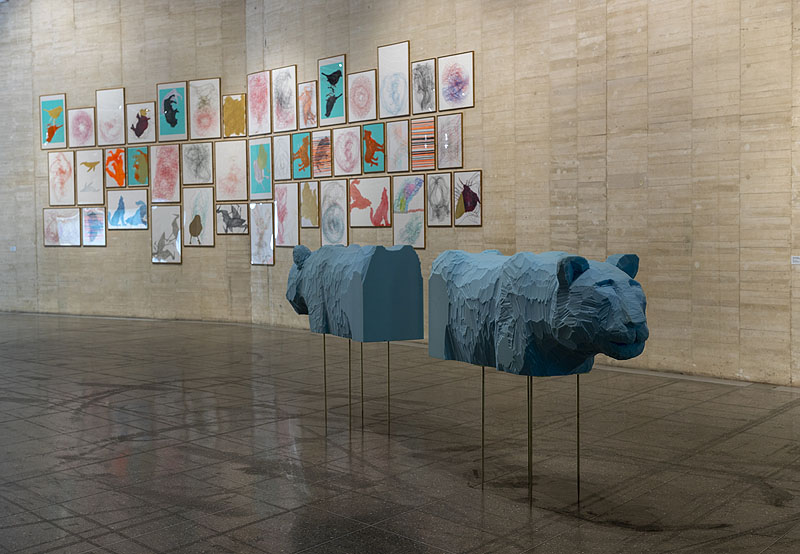 María Luis Fernández también presenta una serie de dibujos recientes en los que han desaparecido los músculos y los huesos y solo han quedado las arterias y las venas. Sin embargo, en ellos se descubren las siluetas de unos animales que se mueven nerviosos por la hoja de papel. Esas siluetas dan paso a otro grupo de nuevas esculturas realizadas amontonando planchas de metacrilato que, colocadas en círculo en la entrada de la sala, el espectador tiene que atravesarlas y rodearlas.