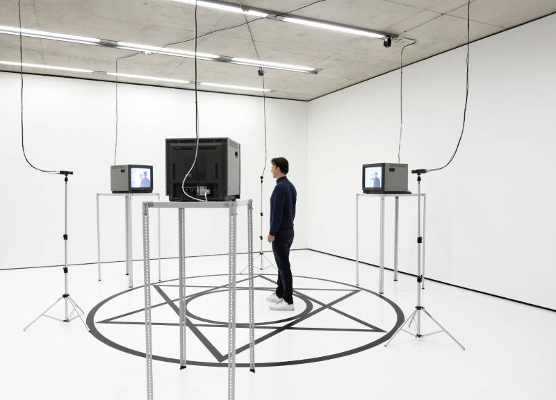Para comenzar, la exposición traza un arco desde las realidades mediáticas de finales de los años 1960 hasta el presente. Para ello, muestra ejemplos fundamentales del videoarte temprano, el cine experimental y el cine expandido. Una obra central es la instalación interactiva de Peter Weibel, “Observation of Observation: Indeterminacy”, creada en 1973. Esta obra centra la atención en el ser humano y su autopercepción en el espacio mediático, planteando de esta manera la cuestión de cómo influyen las nuevas tecnologías visuales a la formación de la identidad personal.