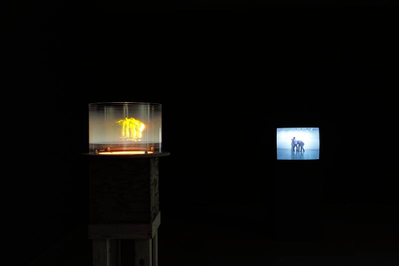 Igualmente, el compromiso con el cuerpo es un tema que recorre el media art desde sus inicios hasta el presente. La traducción del cuerpo en un fenómeno virtual completamente transformable, que da lugar a una comprensión completamente nueva de la fisicalidad. Las obras expuestas en esta sala ilustran esta novedosa imagen del cuerpo informada por los medios. “Huddle” (1976), de Simone Forti, es un holograma que muestra un grupo de cuerpos humanos entrelazados y en movimiento. De esta manera, el espectador puede sentir positivamente como el cuerpo tangible se desliza hacia la inmaterialidad, señalando una constante fundamental de las imágenes mediáticas.