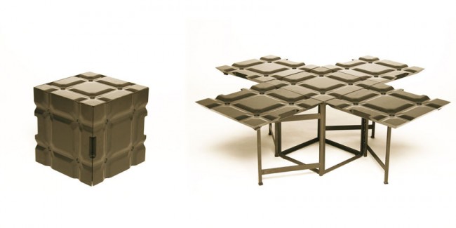 Cube es una mesa asiento que se despliega convirtiéndose en una mesa más grande o en cuatro asientos.