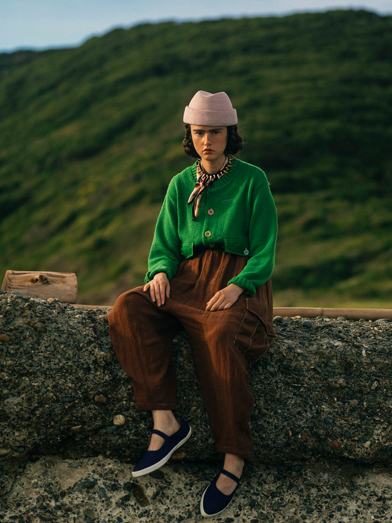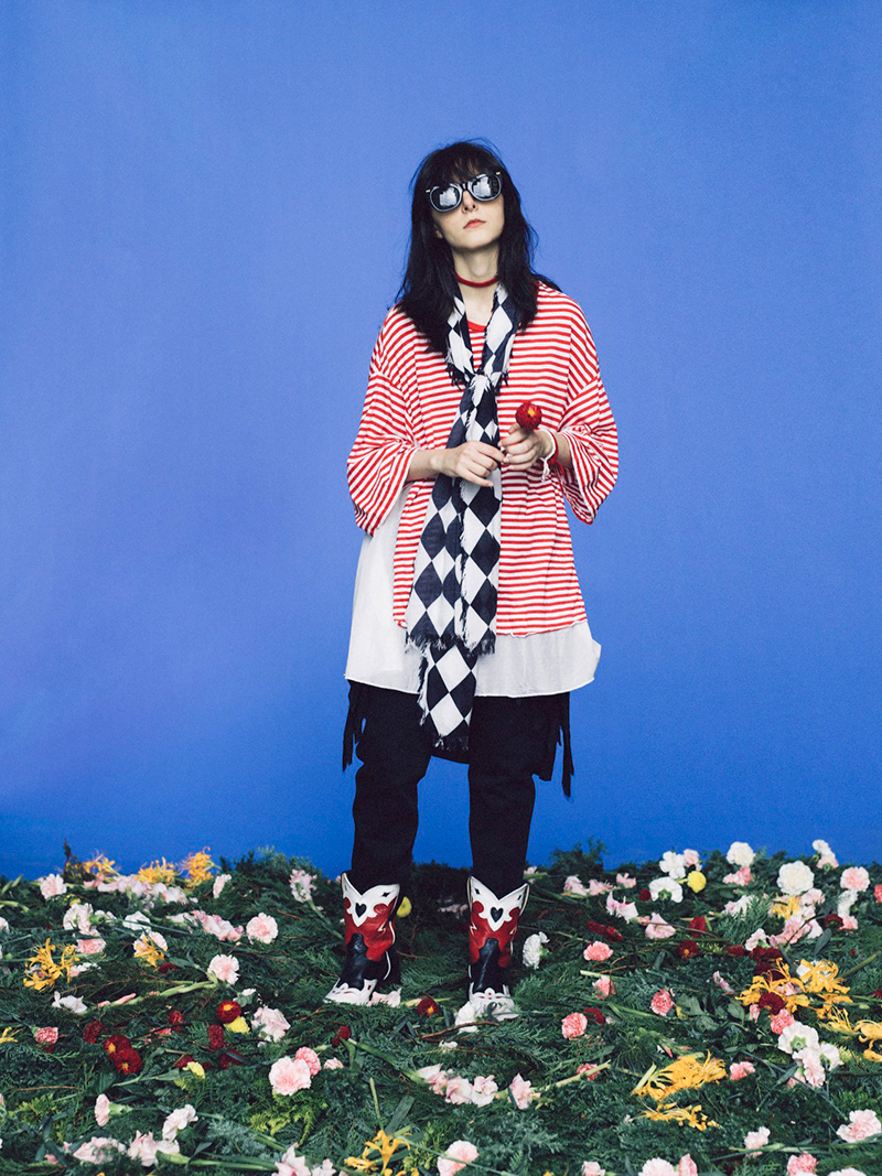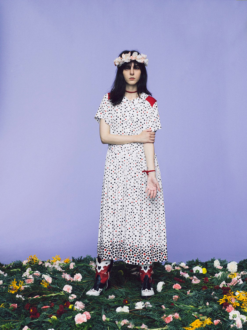 “P.S.” es el nombre que recibe el tercer bloque de Undercover SS21, un homenaje a la artista Patti Smith. La emblemática cantautora punk es una inspiración natural para el diseñador, que durante años formó parte de un grupo de música de Tokio que rendía tributo a los Sex Pistols. Las prendas de este grupo se caracterizan por las siluetas holgadas y relajadas de los vestidos y camisetas, los estampados de rayas y lunares y las superposiciones de bufandas y las corbatas finas.