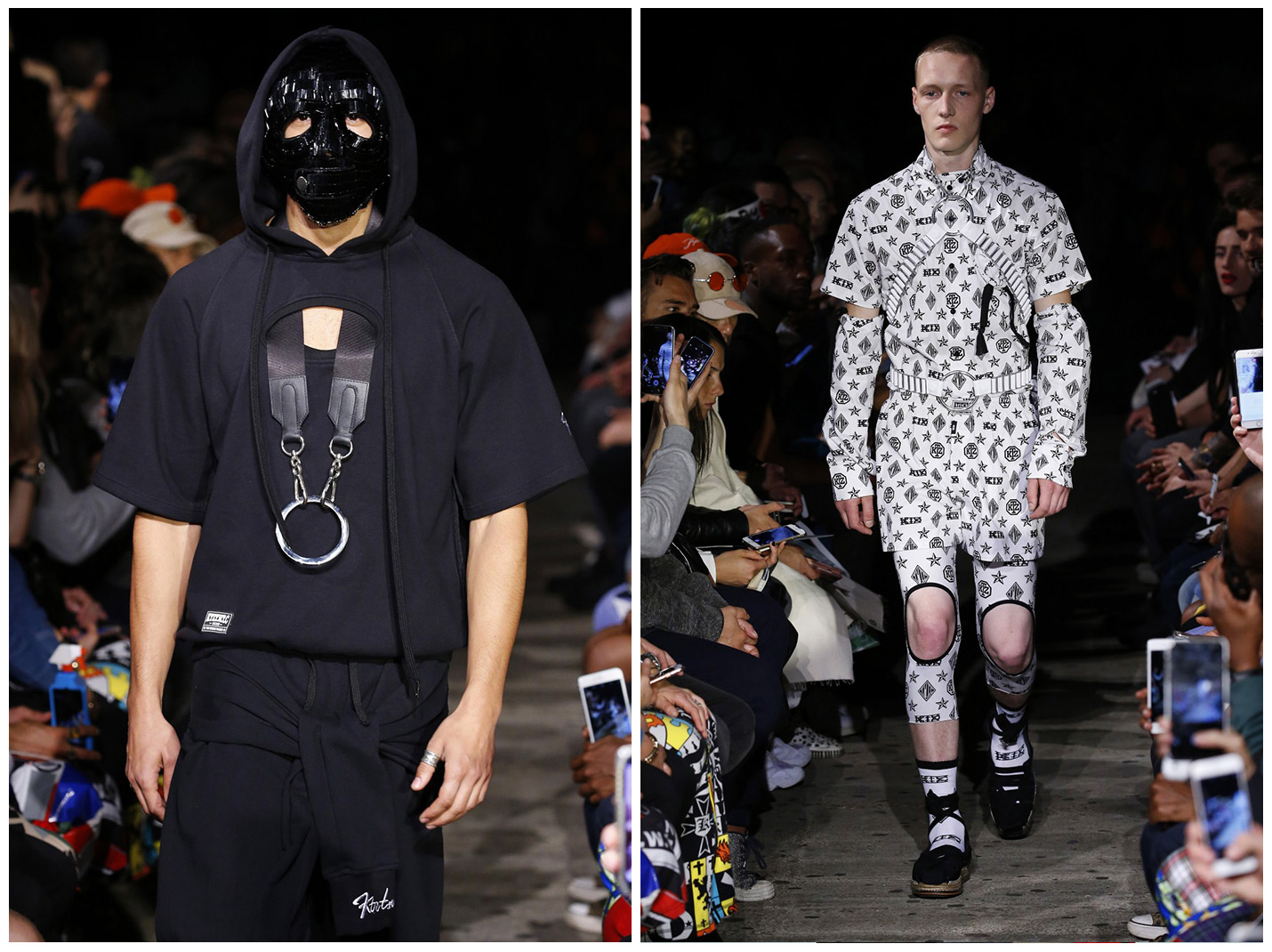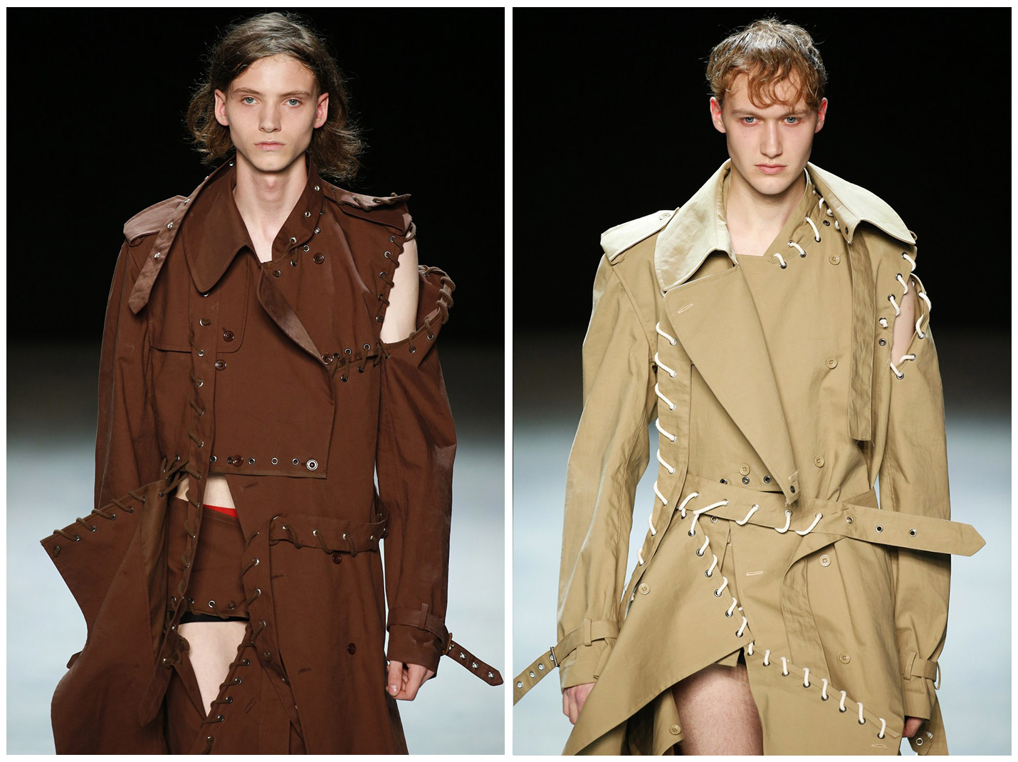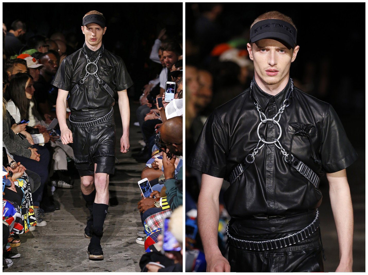 3- KTZ: A pesar de alejarse de los convencionalismo que definen aun la moda masculina, es sin duda la colección con más testosterona de todas las seleccionadas por nosotros. Su autor, Marjan Pejoski, siempre interpreta el estilo callejero de la cultura del hip hop, e incluso antisistema. En esta ocasión le aporta una carga sexual con elementos de estética leather, como arneses que por otro lado también nos llevan un poco a los tiempos del Imperio Romano. Una propuesta muy funcional para quien quiera ir del trabajo directamente a un cuarto oscuo sin necesidad de cambiar el attezzo. Es broma.