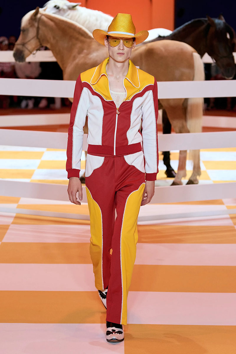 Al ser un tema tan amplio, habrá infinidades de formas de desarrollarlo y trabajarlo; obviamente. Pero para comenzar a identificarlo hay que empezar por lo más explícito. Tomemos el ejemplo de Casablanca, para empezar. En su colección SS23, vimos un desfile de prendas y accesorios de estilo cowboy llevadas al extremo con colores altamente saturados. Botas, sombreros y conjuntos de dos piezas con la ornamentación de aquel entonces nos dan un poco más de información sobre la tendencia.