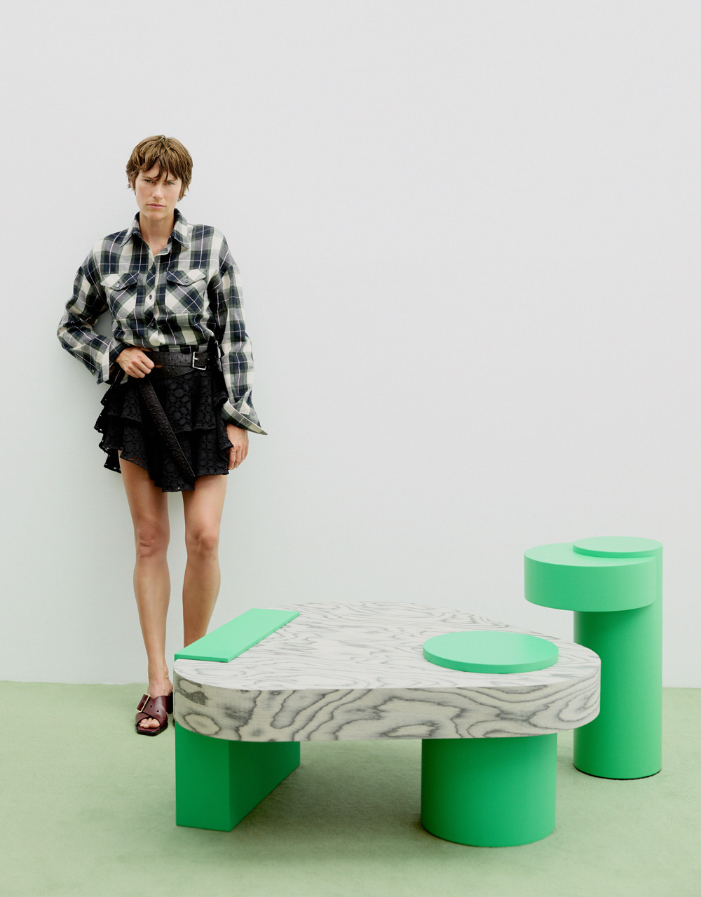 Total look LOEWE: vestido cinturón en algodón + sandalia Belt / Mesas Bold diseñadas por Studiopepe para SANCAL