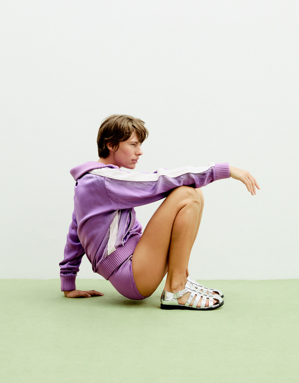 Total look LOEWE: chaqueta tracksuit en viscosa + briefs en viscosa + sandalia campo en piel metalic
