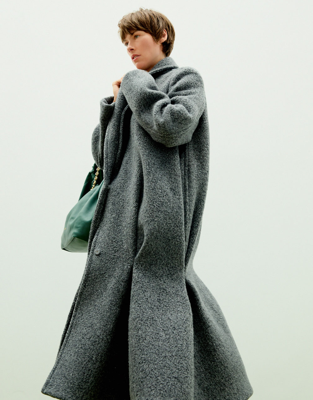 Total look LOEWE: abrigo en mezcla de lana + bolso Squeeze mediano en piel napa de cordero