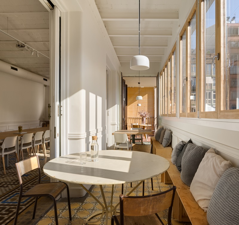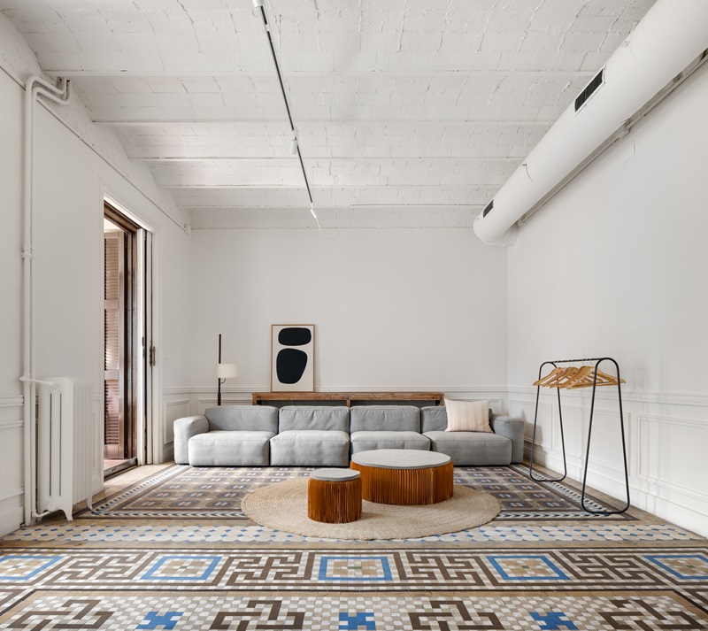 En las inmediaciones de la Rambla de Cataluña y la Avenida Diagonal, se ubica el amplio espacio de Artchimboldi, que ahora luce más moderno, práctico y flexible gracias al trabajo realizado por Emma Martí, en estrecha colaboración con Truyol. La intervención arquitectónica se articula en torno a dos ejes. Por un lado, pone en valor la preexistencia, dejando que cobren protagonismo los bellos suelos de mosaico Nolla, tan populares en los edificios del modernismo catalán.