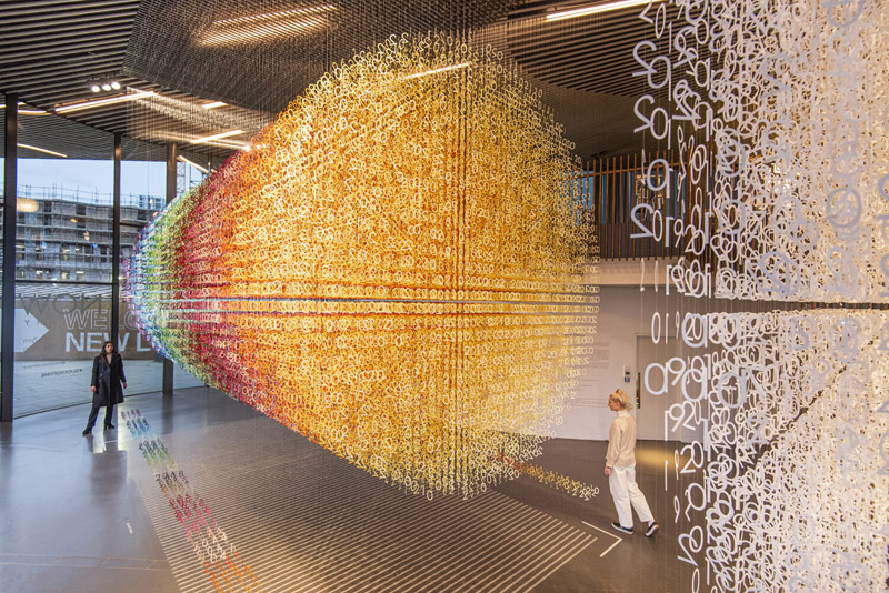 Después, creamos diseños para su posterior producción. Para todas mis instalaciones utilizo un número considerable de módulos (por ejemplo, 168.000 módulos para “Slices of Time”), que tienen que estar perfectamente alineados en cuadrículas tridimensionales. Todo está hecho a mano y se prepara previo al montaje. Esto supone mucho tiempo y la participación de mucha gente.