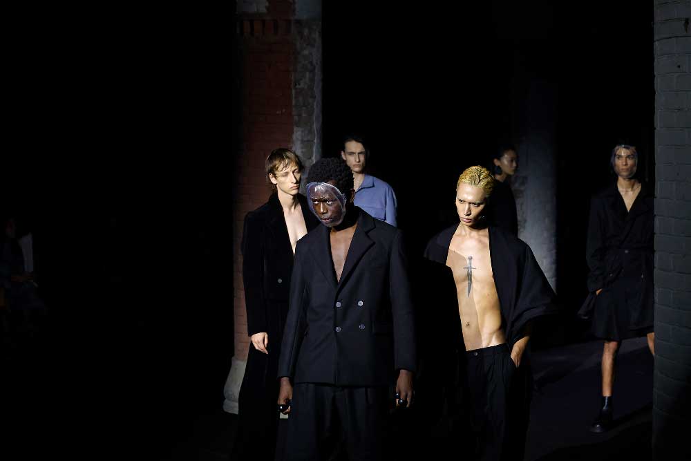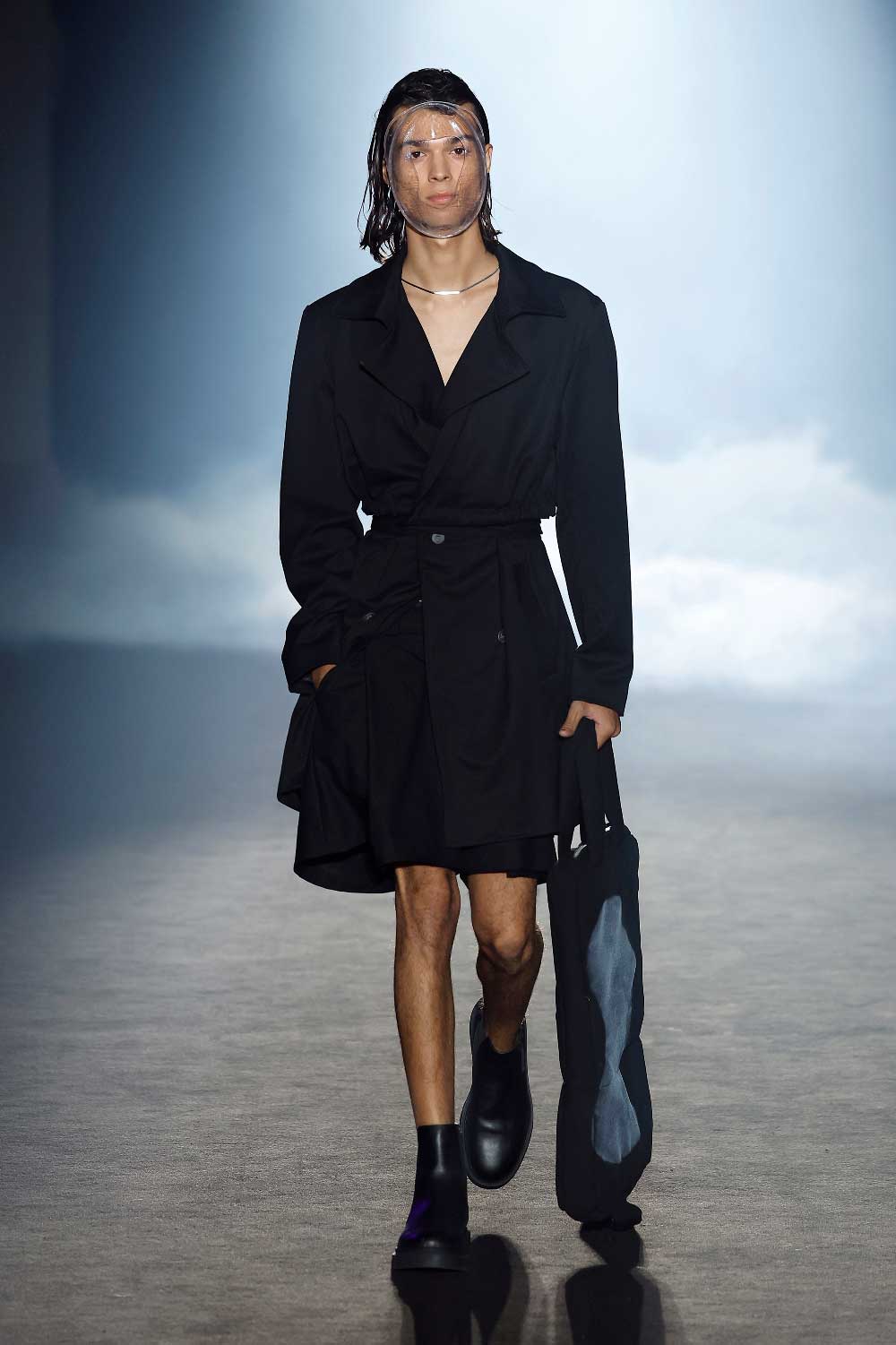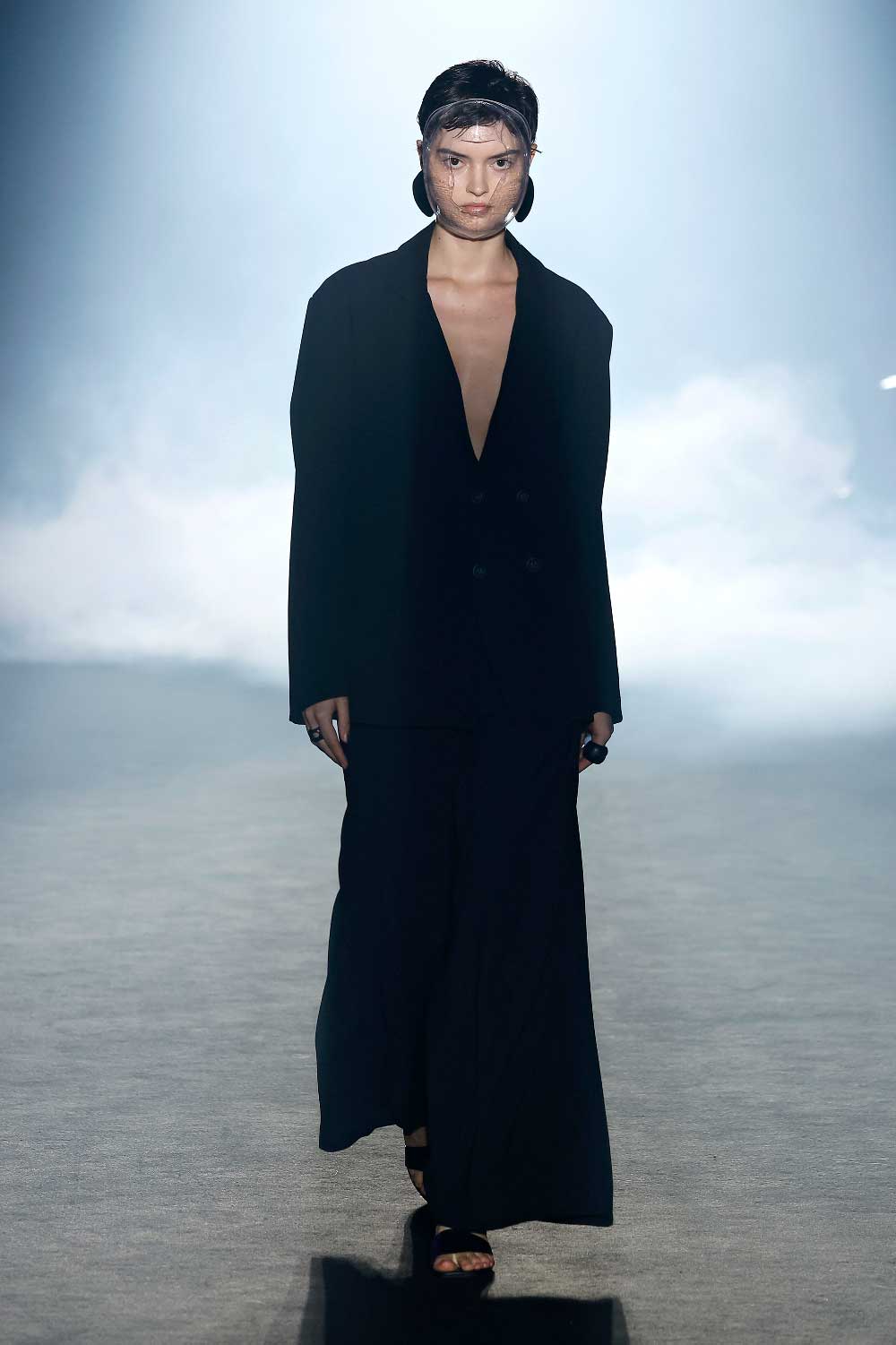 La obra de los artistas contemporáneos siempre “invita a reflexionar”. Pues eso mismo es lo que ha hecho el diseñador guipuzcoano Eñaut con su colección Estertor presentada en 080 Barcelona Fashion. Un desfile con las connotaciones de una performance donde modelos de todos los géneros portaban máscaras transparentes diseñadas para un futuro postapocalíptico, minimalista y elegante.