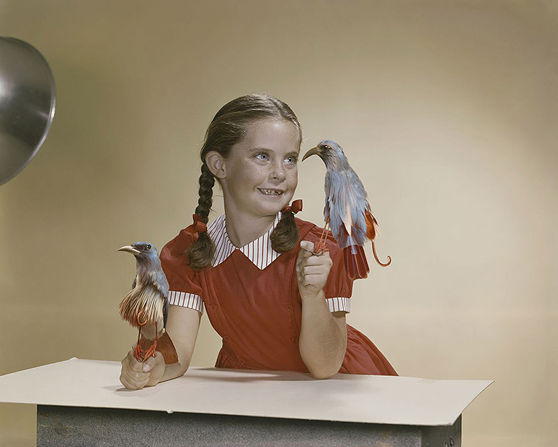 La artista crea collages utilizando tanto su método tradicional -procesar fotografías de bancos fotográficos- como recurriendo a la inteligencia artificial. Parte de la exposición son publicaciones originales, normalmente encontradas por la artista en subastas on Line, que contienen eslóganes falsos. Una obra en la que no sabes donde acaba lo real y empieza lo inventado.