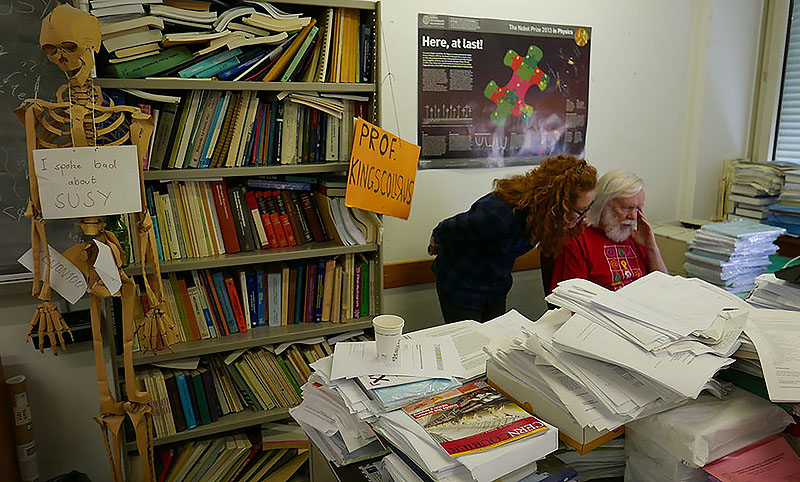 Ruth Jarman del duo Semiconductor con el físico John Ellis durante la residencia en Arts at CERN. Cortesía de CERN.