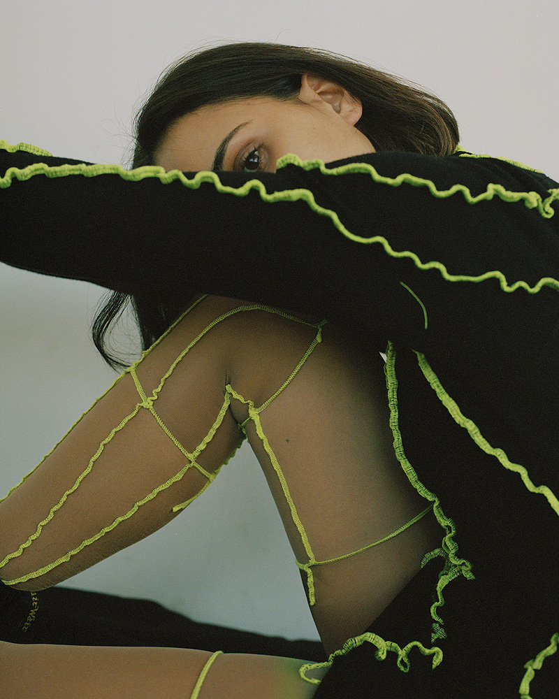 La primera vez que me subí en un escenario fue a los ocho. Sentí mucha adrenalina y me gustó la sensación. A partir de ahí fue viniendo todo un poco solo, quería seguir sintiendo esa sensación así que hacía todo lo posible para poder actuar. Formaba parte de varias compañías de teatro y a los dieciocho empecé a formarme y a trabajar profesionalmente. Empecé a descubrir el mundo audiovisual con piezas pequeñas y empezó a gustarme aún más. Me flipa el lenguaje de cámara, es increíble lo que se puede capturar a través de la lente. Me flipa el lenguaje sutil, tanto en la vida como delante de la cámara, que al final lo que hace es eso, capturar momentos reales. Lo que me engancha de la actuación es el poder poner tu cuerpo y mente en situaciones que quizás no tienes la oportunidad de vivir en tu día a día. Es como si tuvieras la posibilidad de vivir muchas vidas a la vez, y eso me flipa. Mi mente funciona de una forma muy ecléctica y siempre he tenido mucha curiosidad por experimentar y probar todo, en parte la actuación me permite entrar en campos que a primera vista pueden ser muy lejanos de quien eres, luego te das cuenta que de alguna forma u otra cada personaje existe dentro de ti y eso te da una libertad absoluta de expresarte. Me flipa poder expresar mis emociones, supongo que por eso la actuación siempre me ha acompañado, porque ha sido una manera de hacerlo muy guai. Nunca me he sentido identificada con la industria de Hollywood, o al menos no ha sido nunca para mí un objetivo a seguir. Concibo Hollywood como un lenguaje cinematográfico más que engloba un tipo concreto de proyectos, y si estás en la industria cinematográfica esos proyectos en algún momento u otro te pueden llegar, es decidir tú de qué manera formar parte de ellos y de todo lo que engloba ese lenguaje.