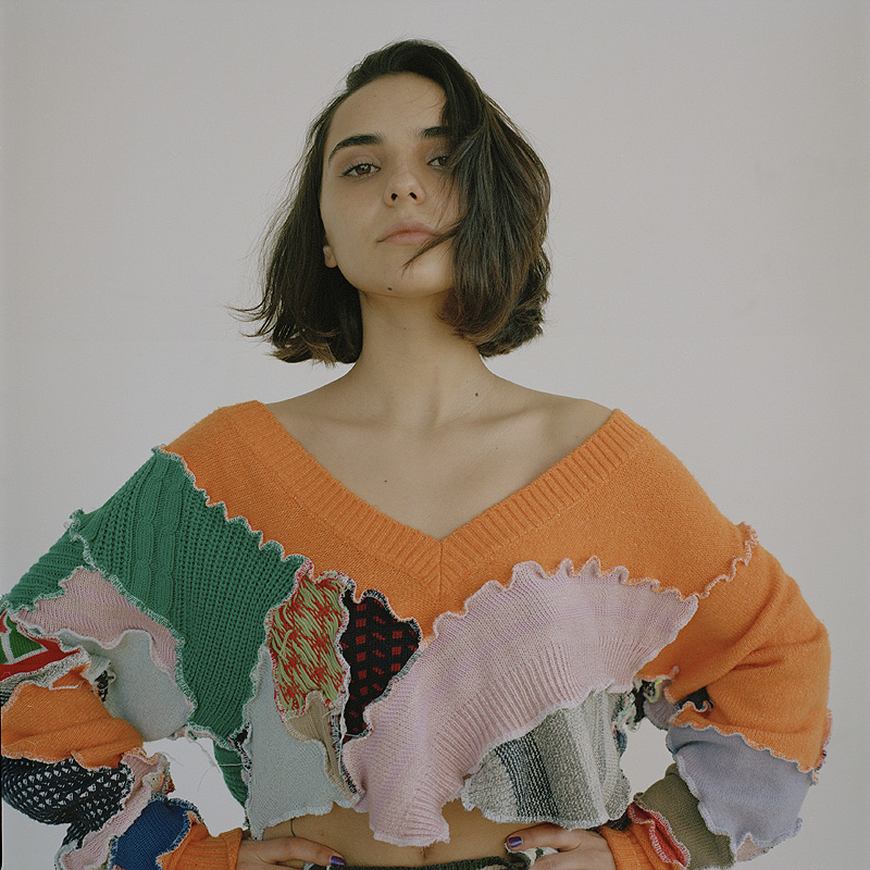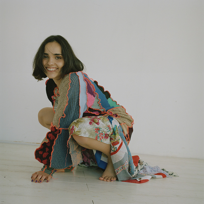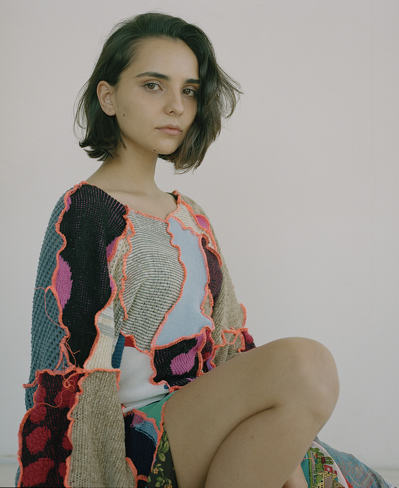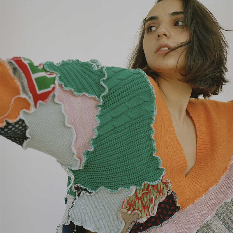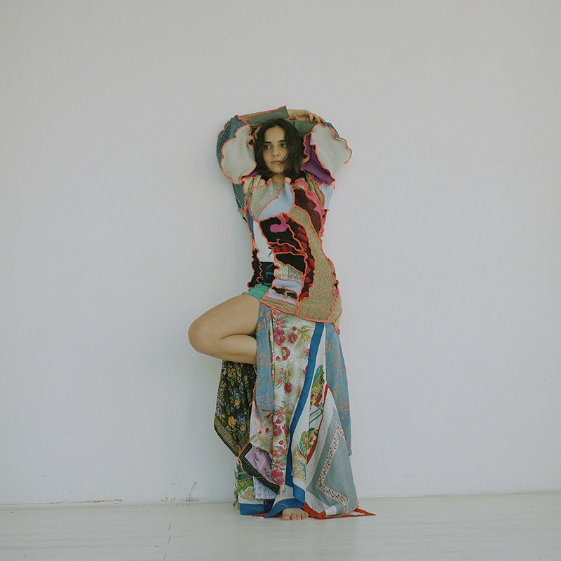Me flipa la ropa, la moda y encontrar piezas únicas. Fue la forma en que descubrí Borbala. Cuando viajo o trabajo fuera una de mis cosas favoritas es hacer ruta para descubrir las mejores cafeterías de la ciudad para pasarme horas ahí bebiendo té y escribiendo, y de paso uso la misma ruta para descubrir piezas de ropa en tiendas vintage y de segunda mano. Me chifla encontrar piezas atemporales y hacer mis propias combinaciones. Para mí la moda es una forma de expresar muy potente y en una de mis rutas descubrí a Borbala en una tienda vintage en mi calle favorita de Budapest. Ferencz, fundadora de la marca, se crió en la Romania postcomunista y empezó a diseñar y crear piezas de ropa a partir de lo que tenía disponible, restos de material trash. A parte de los diseños y estampados eclécticos, me flipó el hecho de que todas las piezas eran únicas y creadas a partir de material reciclado, así que quise contactar con ella para proponerle usar sus piezas para la entrevista. Me encanta conocer y colaborar con artistas de otras ciudades. También agradecerle a Balazs Fromm por estar con su sensibilidad detrás de su cámara analógica.