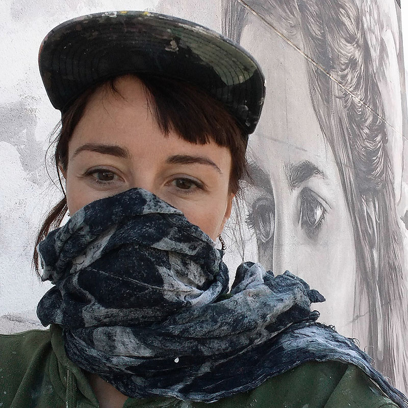 Graduada en Bellas artes, entre sus inspiraciones encontraremos influencias clásicas (Artemisia Gentileschi, Caravaggio, Goya) y no tan clásicas (Louise Bourgeois, Cindy Sherman, Arne Quinze) y dentro de su área es fiel seguidora del trabajo de Paola Delfín, Faith 74, RON, Natalia Raak, Fintan Magee o Manolo Mesa.