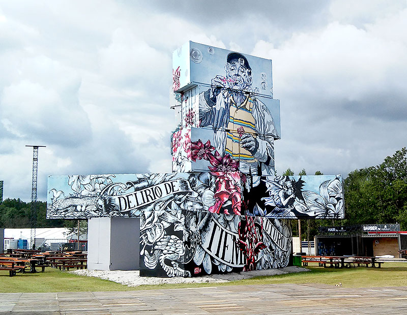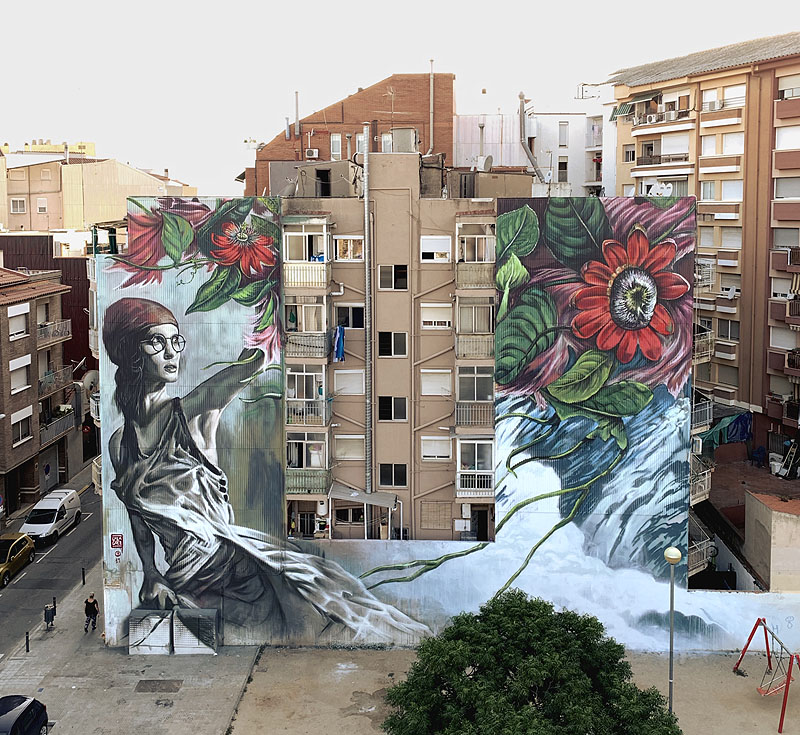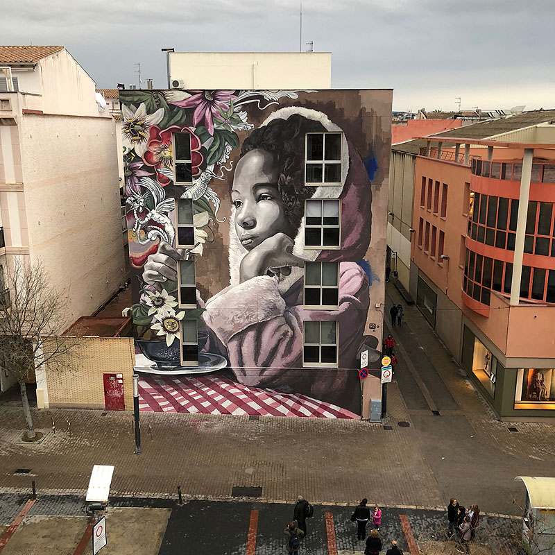 Creo que todas las artes son predominantemente masculinas, pues en galerías o museos el 98 % de los artistas que exponen son hombres. Personalmente disfruto mucho cuando en un festival hay paridad, me gusta trabajar con mujeres y con hombres, y compartir la experiencia con los dos. Cuando se realizan festivales solo de mujeres o de género no binario me da la sensación de que de cara al exterior la repercusión es diferente, porque parece que te han invitado por ser mujer, no por la calidad de mi trabajo, y este automáticamente se pone en segundo lugar. Eso me jode mucho. Luego vienen los comentarios por parte de chicos artistas del tipo de: claro, es que para vosotras con lo de igualdad os hacen muchos festivales, y no sabes cómo encajarlo, porque a veces tienes claro que tu trabajo es muy bueno y comentarios como ese te revientan. También pienso que el arte urbano tiene un carácter viral que va más allá que la galería o el museo, pues la aclamación es popular, y tu arte se conoce por la repercusión que la gente de a pie hace sobre él, y esto es muy positivo, porque las personas que hacen esto no saben si eres un chico o una chica, con lo cual va un paso más allá. Cuando vas a una galería tienes una biografía del artista, con una explicación de la obra, intenciones, etc. El arte urbano te lo encuentras. Lo más seguro es que no conozcas de nada a la o el artista, tiras una foto y lo compartes con su nombre, y ahí empiezas a seguirlo o a indagar más en su trabajo o su obra. Una vez ahí se va difundiendo y comienzan a llamarte de diferentes lugares para pintar en sus ciudades.