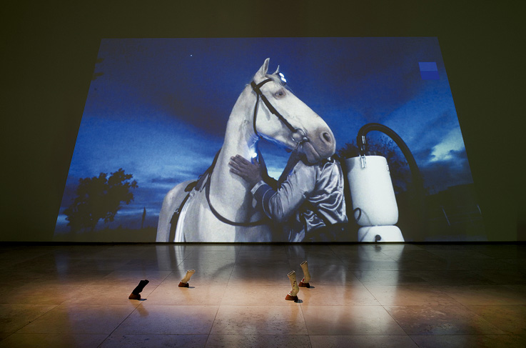 ¿Qué significan para ti los caballos?: “Siempre me han interesado como objeto cultural y símbolo de estatus. Estaba muy interesada en esta historia de la imagen del colonizador llegando a América montado a caballo y al que vieron como un solo ser, como un híbrido divino. Cuando yo llegué a Colombia iba a otra cosa pero allí empezó una investigación sobre esa historia. También trabajé sobre la cultura narco, que para mí es la segunda colonización del terreno colombiano y después salió un premio que desembocó en dos años trabajando con caballos. Tengo la idea de dedicarles un año más en la India porque hice una residencia y di con una historia increíble que me sigue dando vueltas. Había una familia que criaba caballos relinchadores para las novias, los criaban para que ellas los monten una sola vez en su vida cuando se casan en el trayecto hasta la casa del novio, mientras el caballo relincha. Allí hay relaciones familiares con los caballos muy profundas de afecto, trabajo y dominación”.