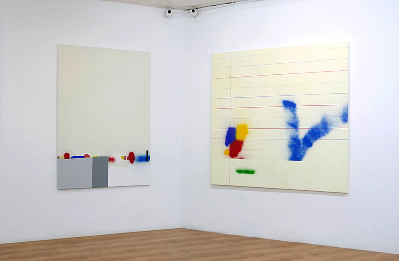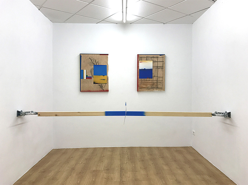 Juegas con las formas para crear vacíos, creas tensiones entre colores y materiales. Existe, obviamente, una continuidad entre tus instalaciones y pinturas. ¿Podría ser tu exposición individual “De aquellas hierbas, estas flores” una obra de arte total? ¿Es esta exposición una oportunidad de llevar un pasado más urbano y callejero a un espacio privado, una intromisión?