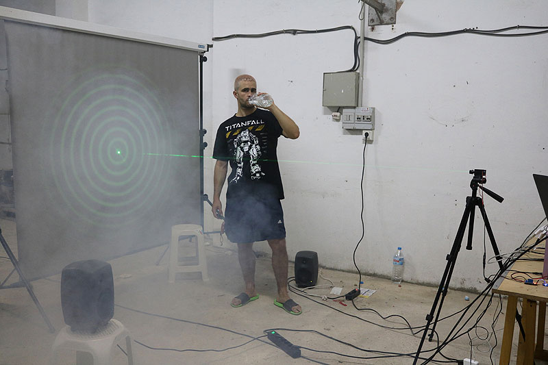 Imagen portada: Carlos Sáez testeando software de sincronía láser para Dual Mismo. Foto: Ines Sans
