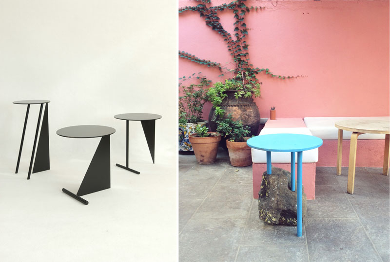 Imagen superior: Izquierda: Familia Stabile. Hierro. 2015. Derecha: Roca. Madera y roca. 2016. Diseños de Max Enrich