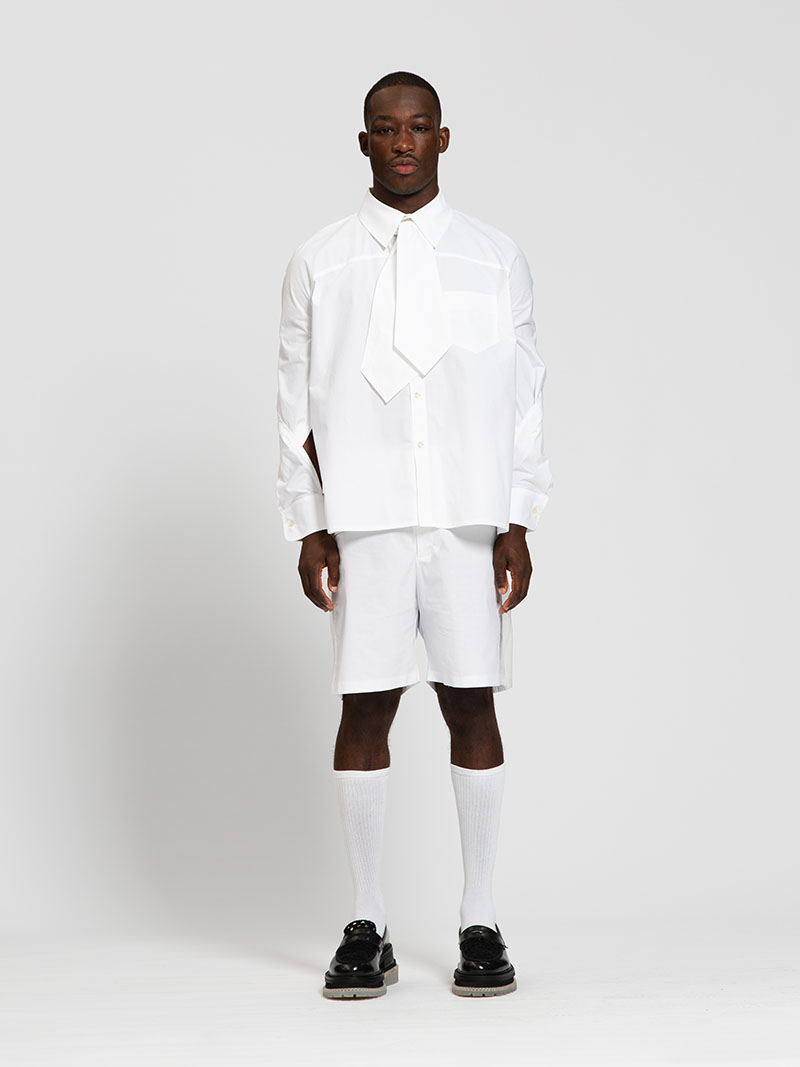 El reflejo de esta cuestión lo encontramos en las siluetas que remiten a las vestimentas imperiales. El hombre de poder viste ropas que a menudo son femeninas y llamativas, revelando una parte de su cuerpo y, sin embargo, no haciéndolo más vulnerable. Esperamos que las personas en el poder tengan una opinión sobre todo, pero esto no es algo natural. Cuando comenzó la pandemia de Covid-19, personas de todo el mundo esperaban decisiones coherentes. Sin embargo, muchos líderes no estaban calificados en el tema de la salud. Los políticos no siempre tienen algo relevante que decir, pero todavía están “obligados” a expresar su opinión, a veces sin sentido. Mi colección es un análisis del juego político más que una crítica del mismo. Mi intención no era decir que todos los políticos son malos. “Duty Calls” es una mezcla entre la admiración que tengo por las personas que anteponen el deber a sus intereses personales y una aguda crítica a los juegos políticos para mantener este PODER.
