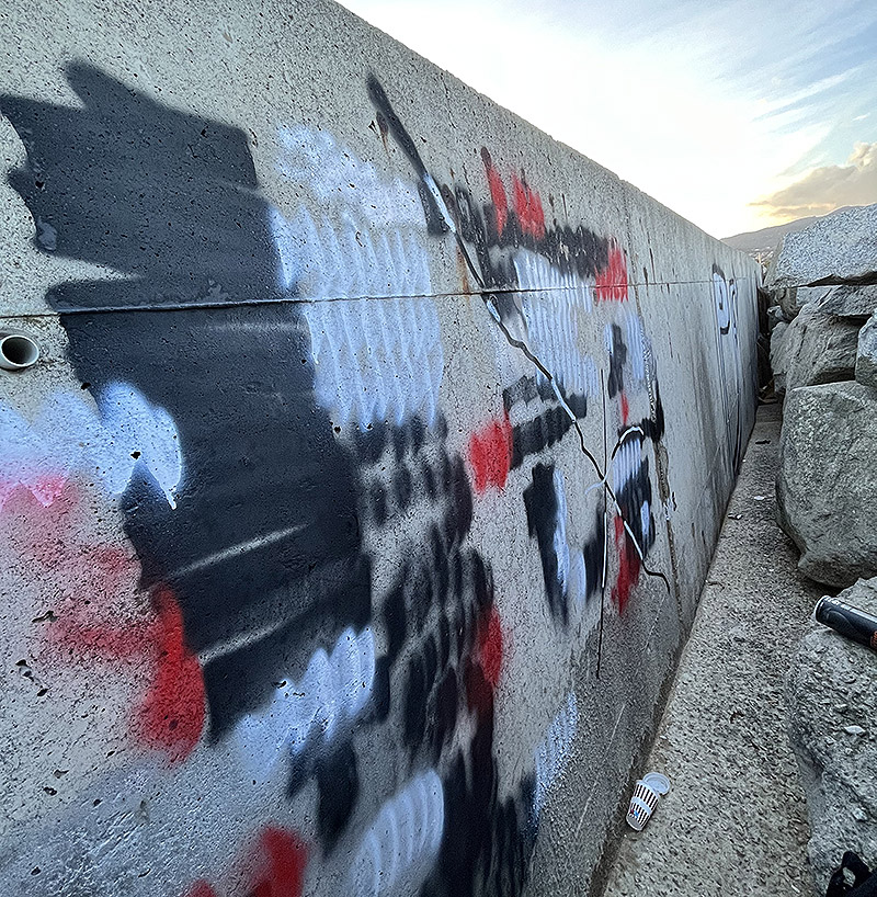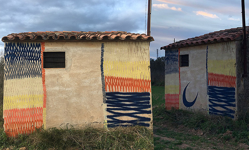 Pensé en sintetizar lo que para mí era el graffiti a grandes rasgos: un trazo, las líneas de un relleno mal hecho de arriba a abajo. Este gesto también me sirve para optimizar recursos: al hacer rayitas y no un relleno homogéneo, consigo alargar un poco la vida del spray y puedo pintar más rato o reservar color para usarlo más tarde.