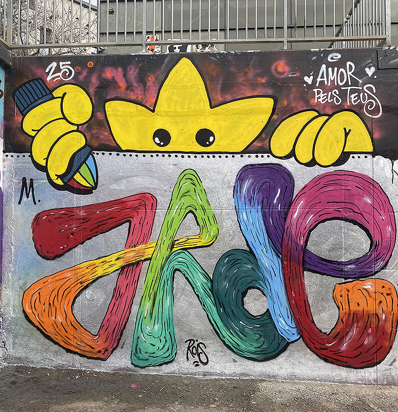 Amor Pels Teus nació un poco al ir a pintar todos juntos debajo de puentes. Muchos colegas no habían pintado nunca, así que surgió como una forma de “democratizar” el arte y unificar al grupo. Básicamente, si uno no sabía qué pintar, podía hacerse unas letras bien locas y sentir que formábamos parte de un colectivo.