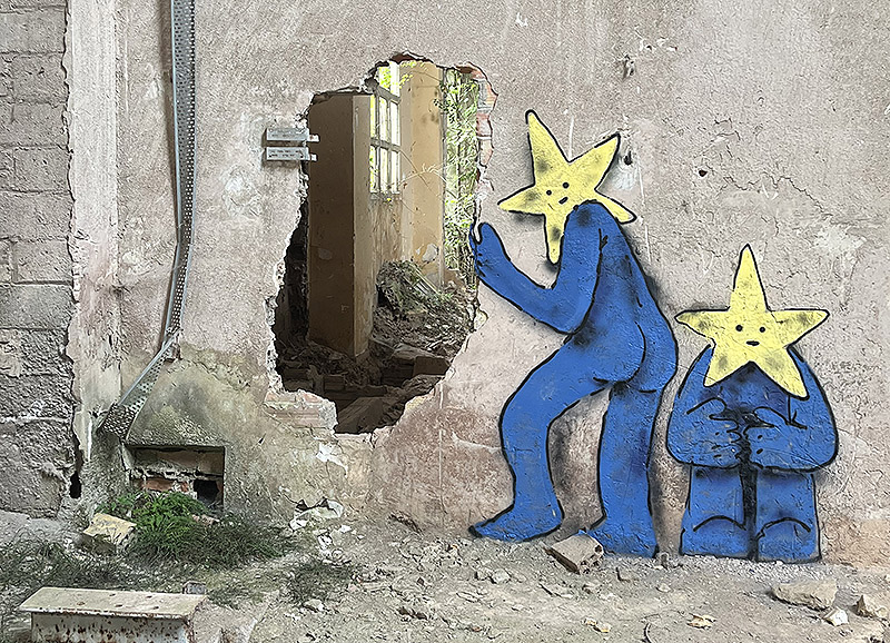Estos espacios me permiten tener mi propia galería, en la que elijo las obras que se exponen sin saber cuánto van a durar, un poco como en la calle, pero más escondido. Me refiero a fábricas que aún están dentro de una burbuja aislada del tiempo, en las que muy poca gente ha entrado. Con suerte, encuentras alguna pieza de algún escritor old school, pero principalmente el musgo, el polvo y el óxido son quienes se han encargado de decorar las salas.