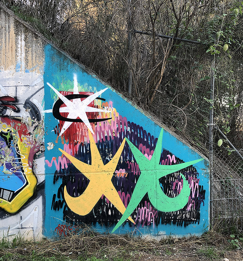 Se podría decir que es la formalización del trazo que surge al quedarse sin pintura o cuando acabas una pieza con prisas, un top to bottom neoyorquino pero apurado.