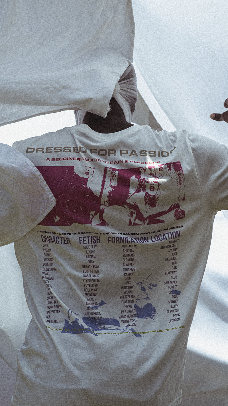 Háblanos de tu última colección “Instruments of Pleasure”. La nueva colección de Eris Black está dividida en capítulos. El primer capítulo “Thrills of Heartbreak” cuenta la historia de una pareja que durante la cuarentena experimenta el aburrimiento, por eso intentan “spice things up” hasta llegar a una orgía. Se basa vagamente en mis propias experiencias y de conversaciones que tuve con amigos conocidos durante la cuarentena. Todas estas conversaciones me permitieron expresar y describir los personajes de una manera más identificable, tanto como para mí como para los espectadores. El principal mensaje no se puede cubrir por completo en la nueva película que acabamos de estrenar, solo explora el comienzo… El punto principal solo explora las consecuencias de las decisiones que tomamos cuando estamos aburridos, el segundo va a seguir la trayectoria de los otros personajes involucrados en su propia vida.