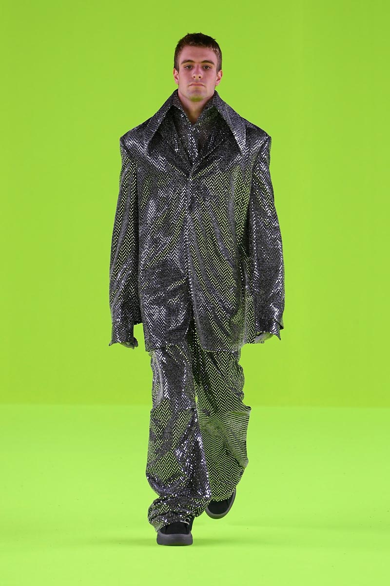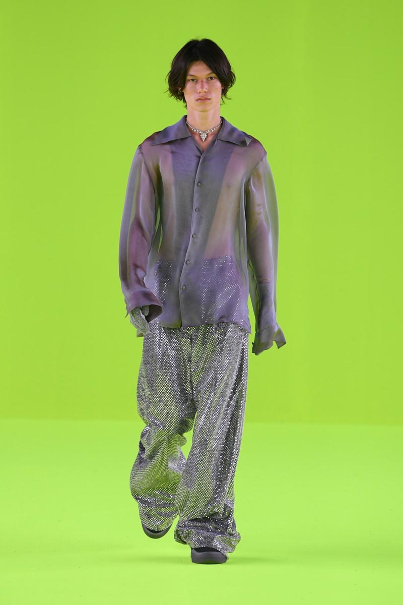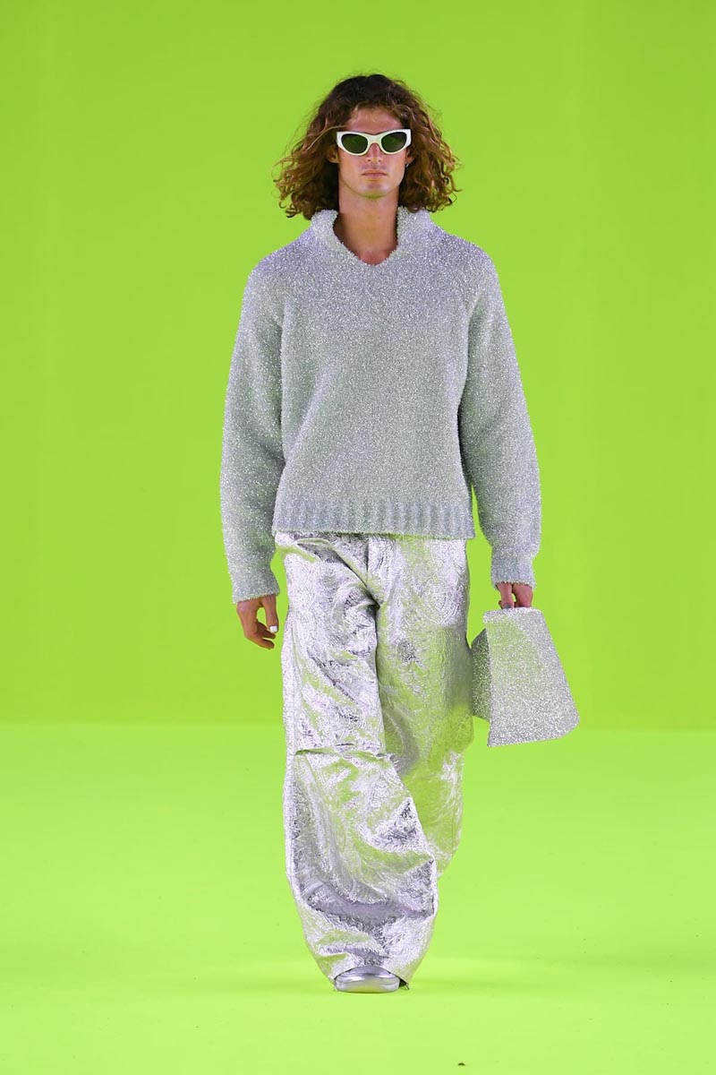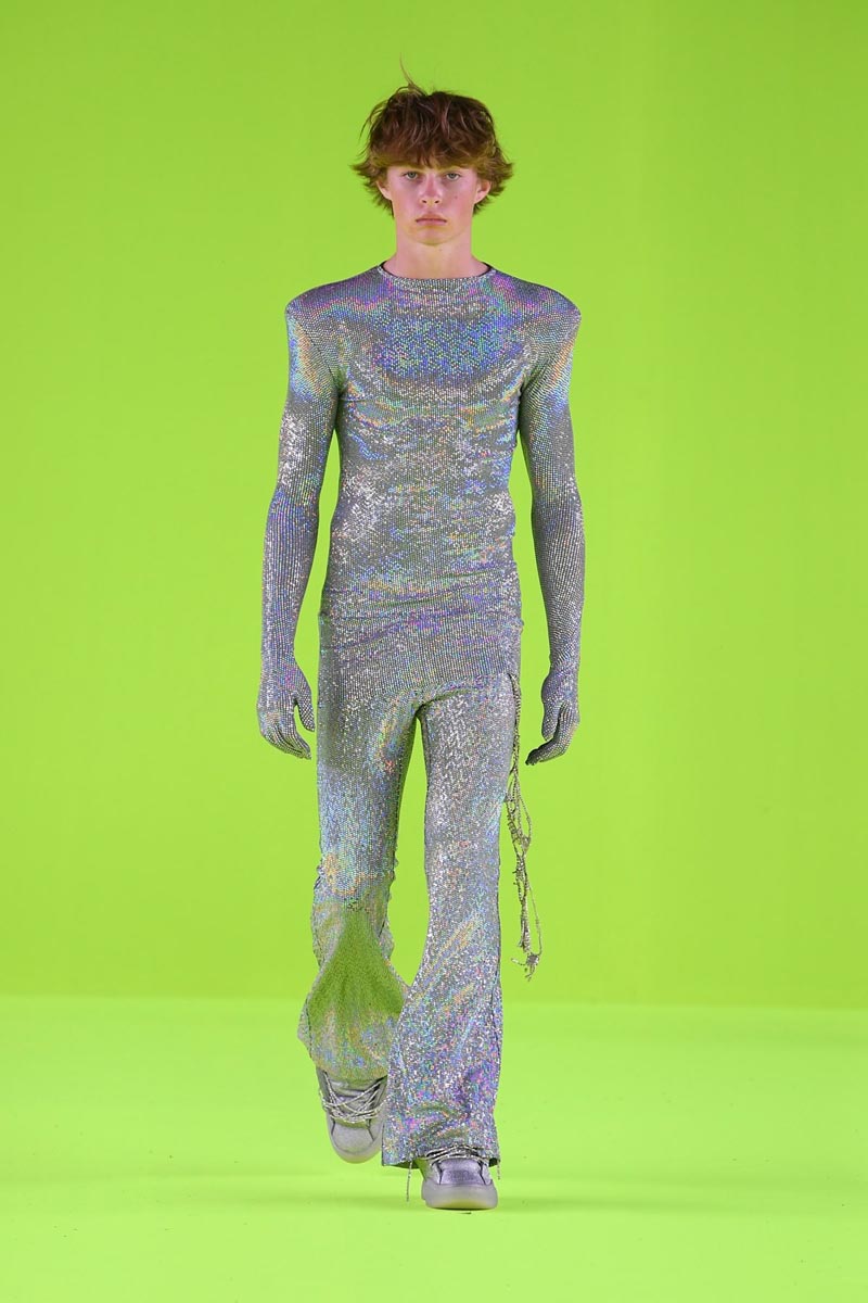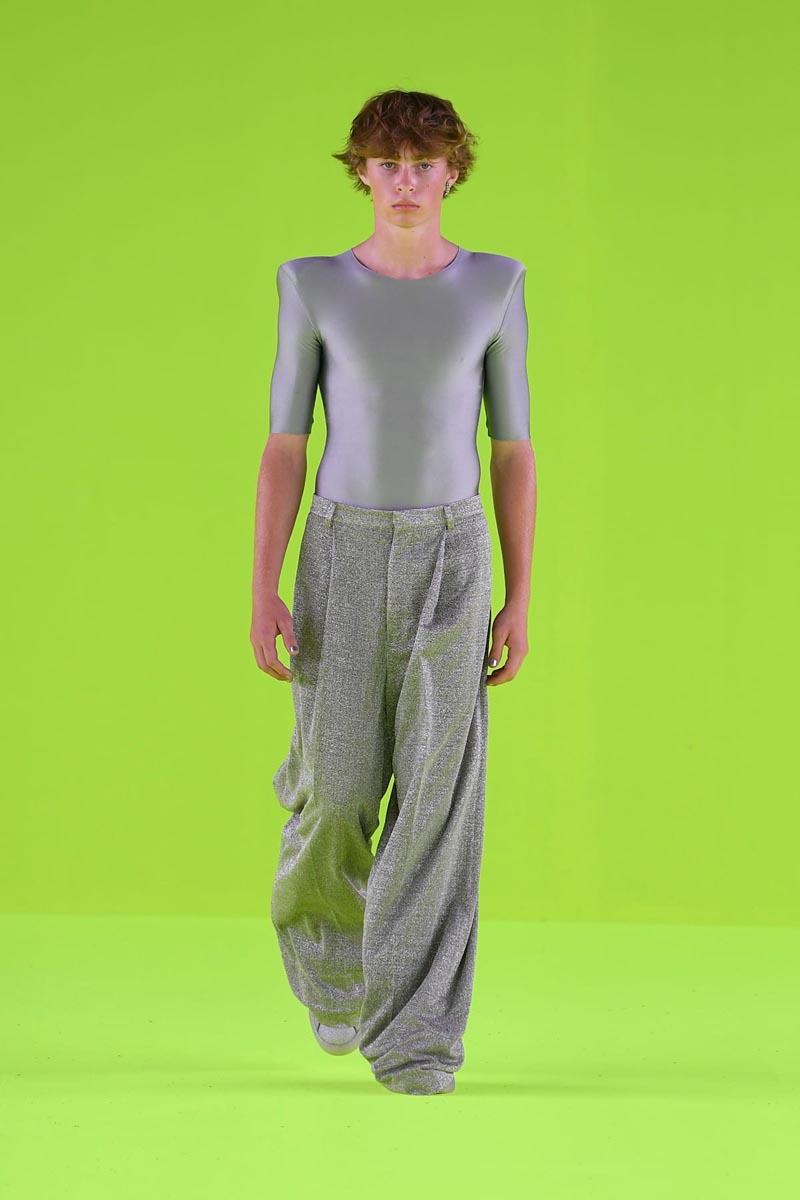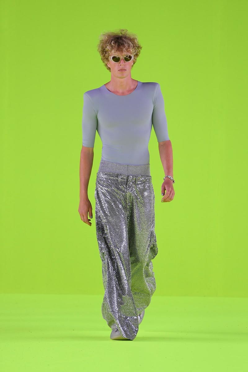 ERL SS24 presenta los mismos arquetipos punks y deportivos con nuevas sensibilidades y un más alto grado de elevación. El enfoque esta puesto en el refinamiento; por eso tenemos una colección enteramente tonal que s oscila entre el gris y el negro… algunos detalles de metálico y lentejuelas sirven para acentuar la paleta de colores. Los pilares elevados de estilo americano se presentan, como es de costumbre, a través de un punto metálico lleno de brillo… mientras que el punto grueso sirve para atar cabos.
