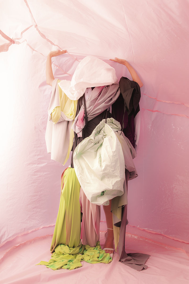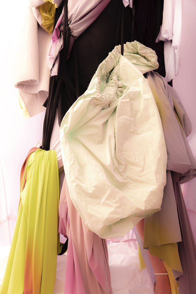 También seguimos viendo los nudos, muy asiduos en tus diseños, ¿Son meramente técnicos o representan algo más profundo en tus diseños? Los nudos vienen de mi madre. Solía comprar vestidos en las tiendas y, al ser bastante inconformista, los anudaba en el bajo, haciéndolos suyos. De ahí viene todo. Si no te gusta algo, anúdalo.