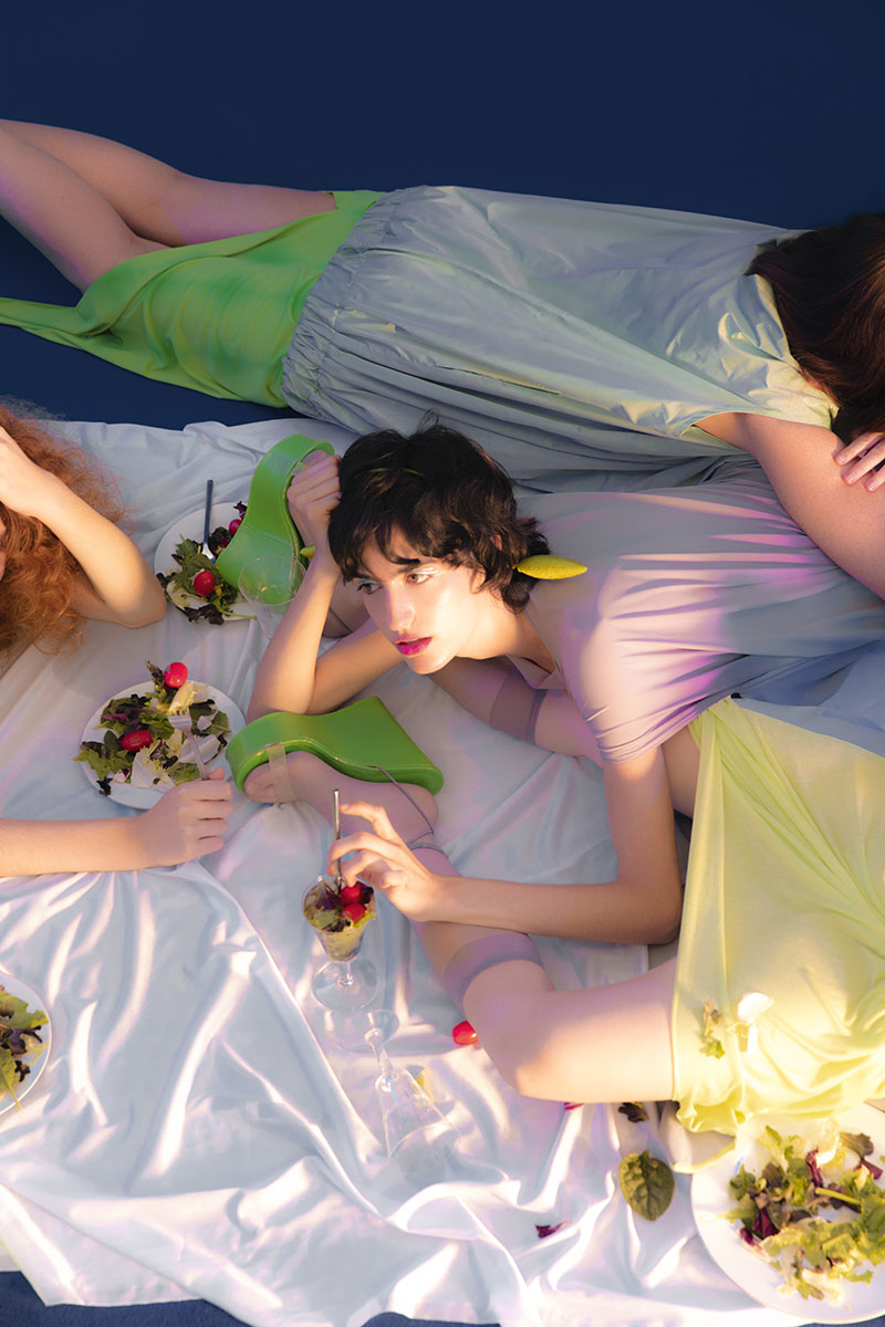 Y haciendo referencia a los estampados, ¿en qué te has inspirado a la hora de elegir la paleta de colores de esta colección? He buscado representar todo aquello que se consumía en las fiestas de Peggy: verde absenta, amarillo lima o morado berenjena. Todo ello en formas líquidas y en movimiento.