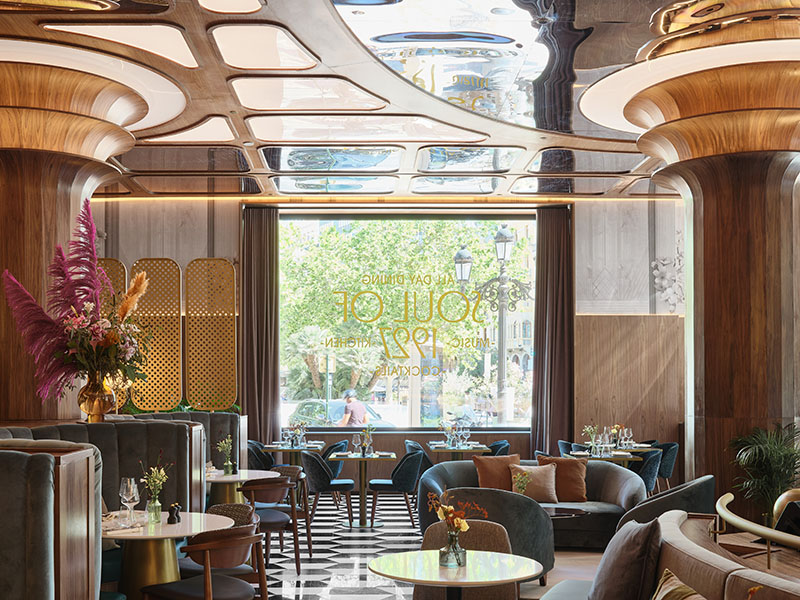 El diseño interior toma como punto de partida el lenguaje visual del Art Déco, con referencias a los años veinte en ciudades como Nueva York o la mencionada Chicago, pero añade también elementos vinculados al Mediterráneo. En las habitaciones pueden verse ilustraciones de enclaves reconocibles de la ciudad, junto a materiales como madera de nogal, piedra natural y piezas de mobiliario creadas específicamente para este proyecto. Las luminarias suspendidas conviven con sistemas táctiles y cada cortina muestra un patrón geométrico diseñado ex profeso.