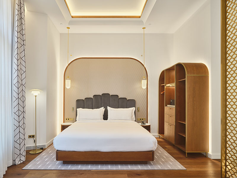 Grand Hotel Centenari Valencia, que conserva su volumetría y fachada, mantiene elementos constructivos como las carpinterías de madera y piezas de cerrajería restauradas. La instalación cuenta con siete plantas y un total de 53 habitaciones. “Desde Erre abordamos este proyecto con la responsabilidad que supone intervenir en un edificio de gran valor patrimonial. Nuestro compromiso fue encontrar ese equilibrio entre lo que el edificio fue y lo que debía llegar a ser”, explican los arquitectos José Martí, Amparo Roig y M. Ángeles Ros.